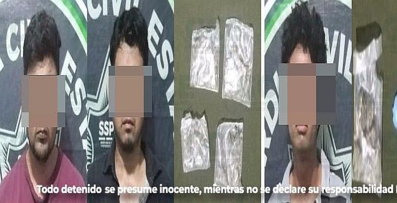 Se informó que fueron a estos sujetos les encontraron cuatro bolsas que tenían marihuana.