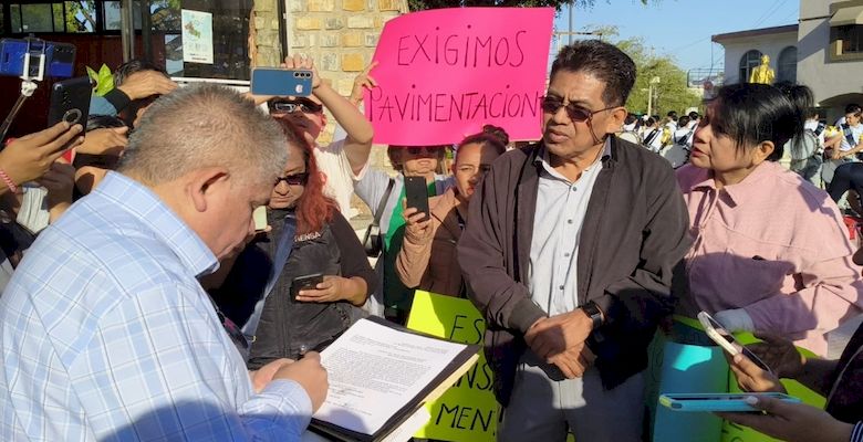 La llegada de los protestantes fue antes del homenaje a la Bandera de las ocho de la mañana y fueron atendidos por Luis Ángel Contreras Malibrán, secretario del Ayuntamiento, quien firmó un documento para comprometerse a hacer la obra en cuanto llegue el recurso.