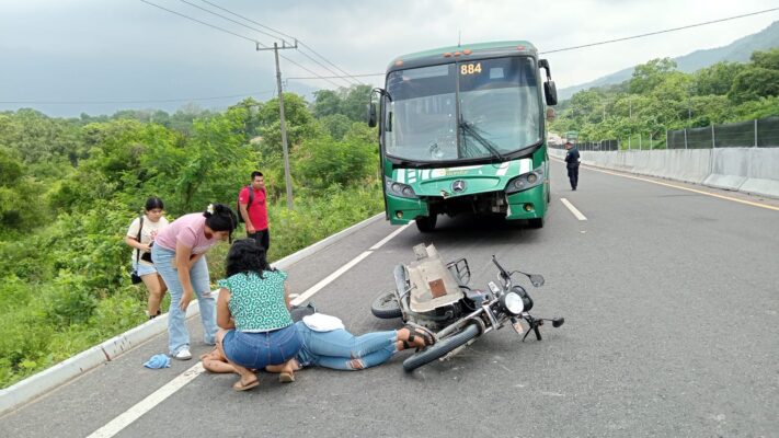 AXTLA. Una mujer que viajaba en motocicleta resultó con lesiones de consideración tras un choque contra un autobús, la mañana de este domingo sobre la carretera federal Valles-Tamazunchale.