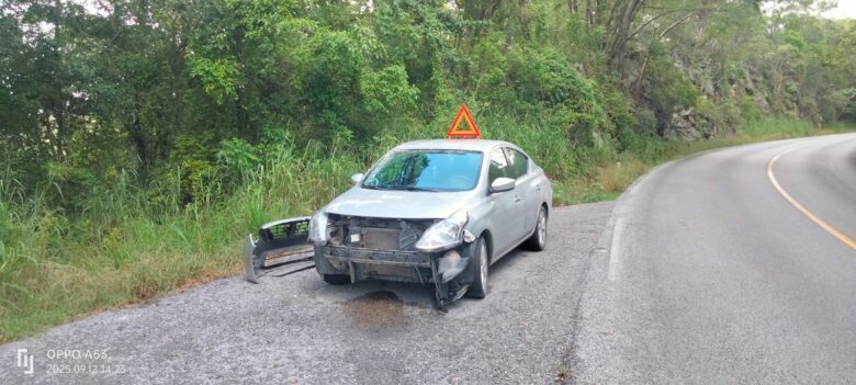 En otro hecho, aproximadamente en el kilómetro 17, en el tramo La Pitahaya – Los Otates, una camioneta Nissan Kicks guinda volcó y quedó con las llantas hacia arriba.