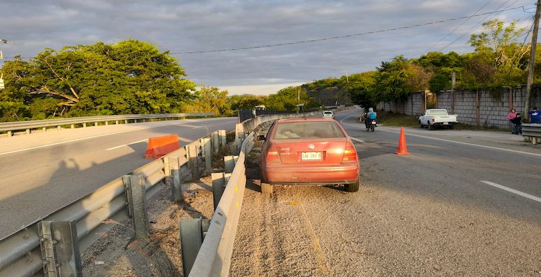 La mañana de este martes, un vehículo Volkswagen Jetta color rojo, modelo atrasado, chocó contra la barrera de contención sobre la carretera federal número 85, justo frente al panteón Jardines de Oxitipa.