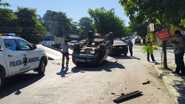 CIUDAD VALLES. Una camioneta volcó la en la avenida Ejército Mexicano, cerca de la colonia Tipzén, luego de que su conductora perdiera el control al quedarse dormida al volante. Afortunadamente no se reportaron lesiones graves.