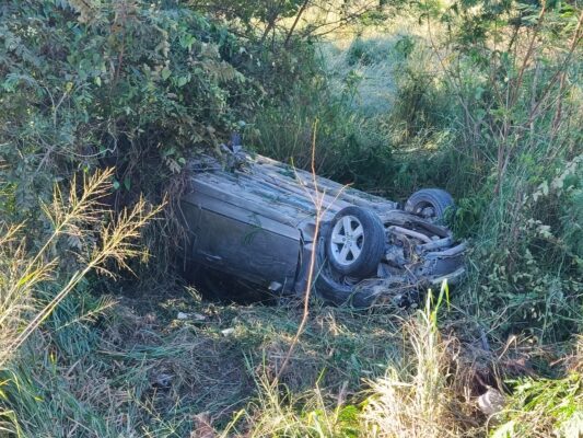 La unidad salió del camino hacia la derecha y cayó a un desnivel, donde terminó volcada con las llantas hacia arriba.