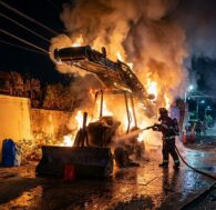 Presumen maquinaria para arreglar calle y se quema